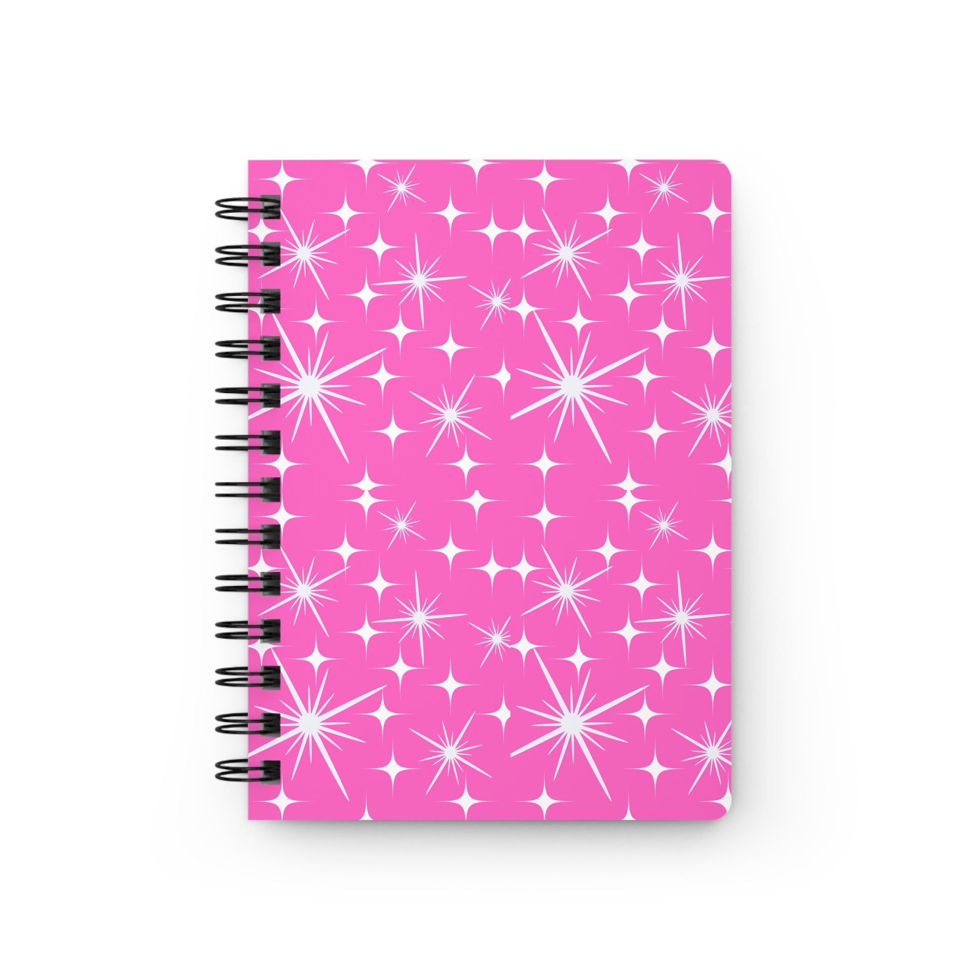 Midcentury Modern Stars Pattern Hot Pink Writing Sketch Inspiration Spiral Bound Journal