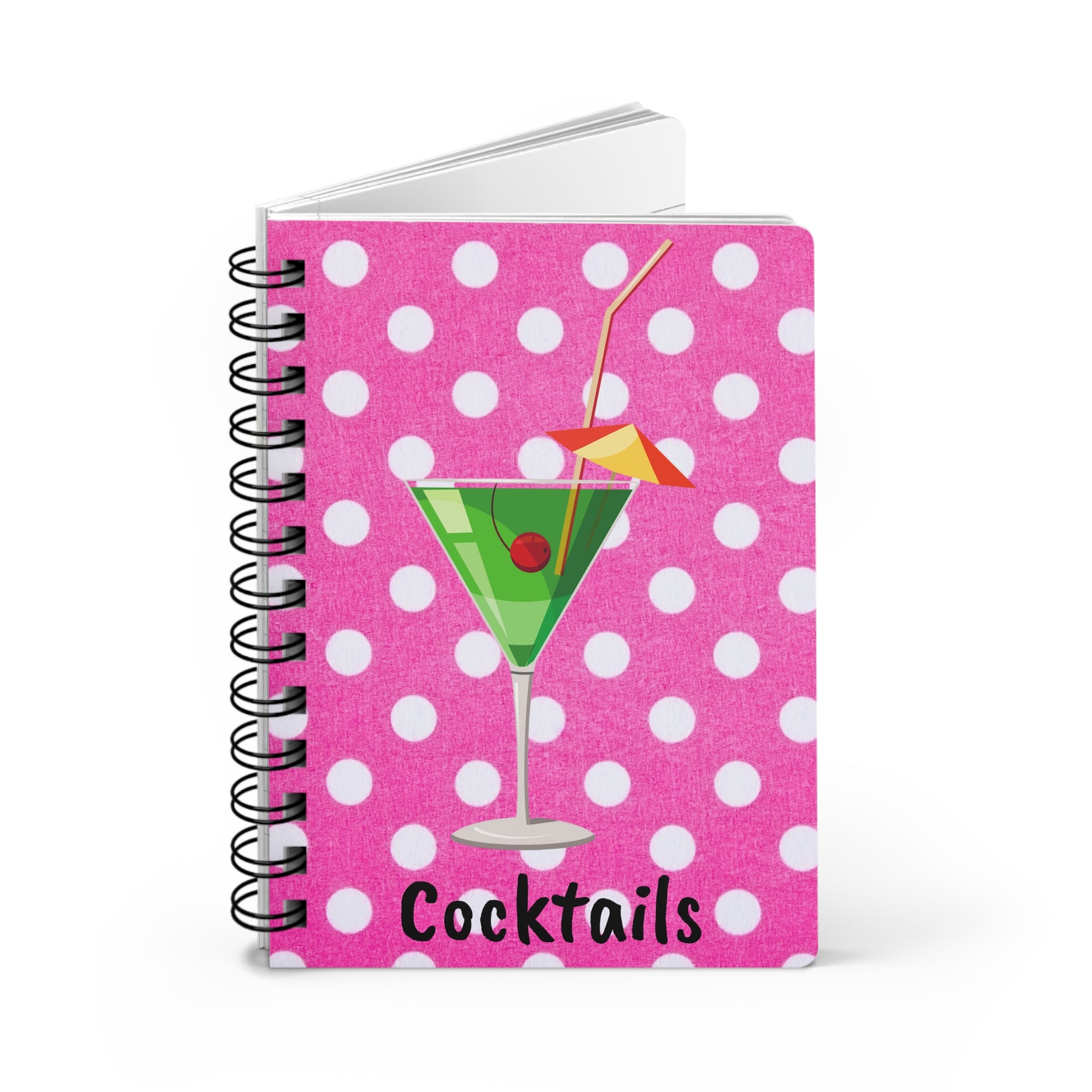 Triple Pink Polka Dot Martini Cocktail Party Entertaining Recipe Spiral Bound Journal